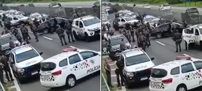 A abordagem ocorreu na Rodovia Padre Manoel da Nóbrega, na divisa entre Mongaguá e Praia Grande. Durante a intervenção, houve disparos por parte da equipe policial, “diante de situação de risco”, conforme informou a pasta.
