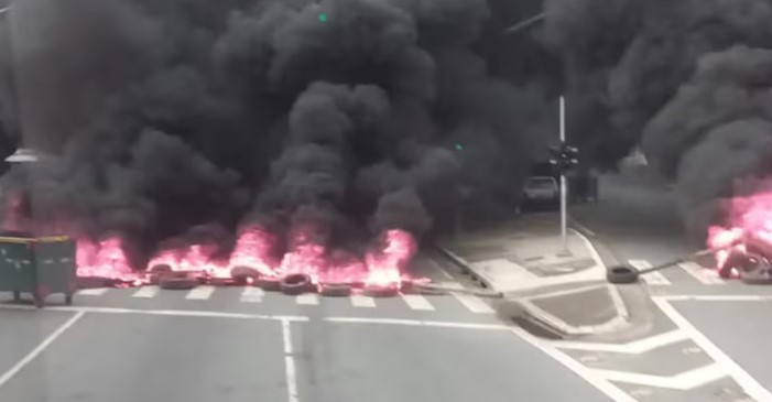 A Secretaria da Segurança Pública informou que a Polícia Militar foi chamada por volta das 16h para atender à ocorrência, com apoio do Corpo de Bombeiros para controlar o incêndio dos pneus.
